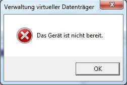 Wenn Sie nicht über die richtigen Berechtigungen verfügen oder wenn es ein Problem mit der Laufwerkszuordnung zwischen dem Betriebssystem und dem Virtual Machine Manager gibt, wird der Fehler „Das Gerät ist nicht bereit“ im Virtual Disc Manager angezeigt.