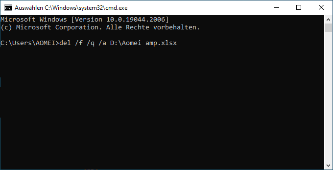 Schritt 2. Geben Sie im Pop-up-Fenster „del /f /q /a Dateipfad“ ein und drücken Sie die Eingabetaste.