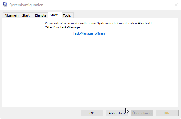 Schritt 4. Gehen Sie im Fenster „Systemkonfiguration“ zu „Start“ und klicken Sie auf „Task-Manager öffnen“.