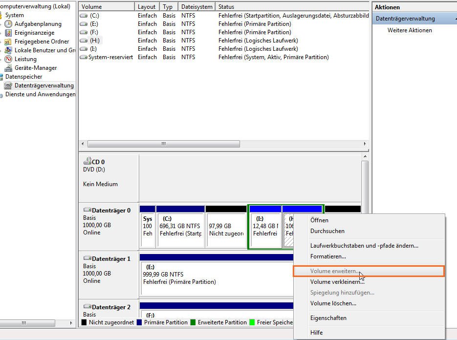 Datenträgerverwaltung: Option „Volume erweitern“ geht nicht