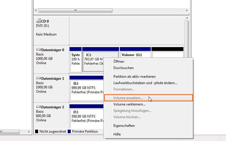Datenträgerverwaltung Option „Volume erweitern“ geht nicht - Warum?