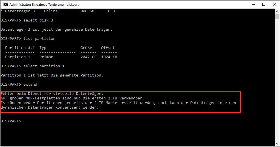 Warum kann DiskPart Partitionen über 2 TB nicht erweitern?