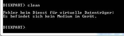Diskpart-Fehler: Es befindet sich kein Medium im Gerät