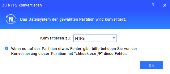 ▶ Methode 3. In das NTFS-Dateisystem konvertieren