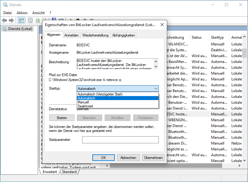 Wenn Sie aufgrund der BitLocker-Laufwerkverschlüsselung nicht auf die externe Festplatte zugreifen können, müssen Sie den BitLocker-Verschlüsselungsdienst ändern.