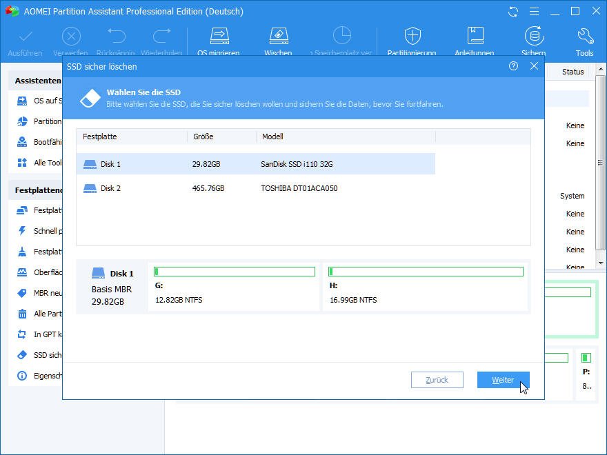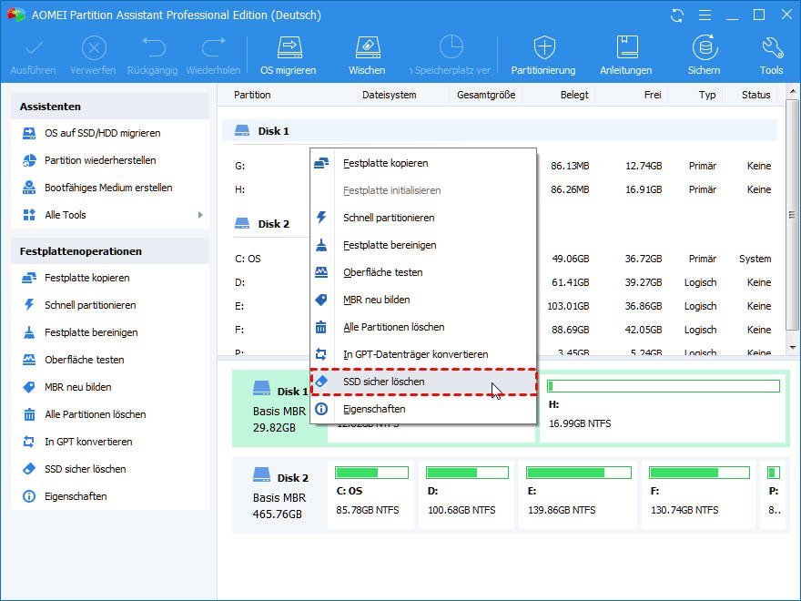 Sie haben also bereits eine Festplatte aus dem BIOS komplett gelöscht. Sie können eine SSD jedoch nicht auf dieselbe Weise löschen, da dies die SSD beschädigen würde. Der nächste Inhalt befasst sich mit dem sicheren Löschen von SSDs mit AOMEI Partition Assistant.