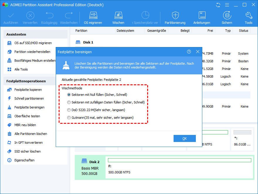 Hier stellen wir Ihnen AOMEI Partition Assistant vor, das beste Tool zum Löschen von Festplatten, mit dem Sie Festplatten einfach und frei aus dem BIOS löschen können.