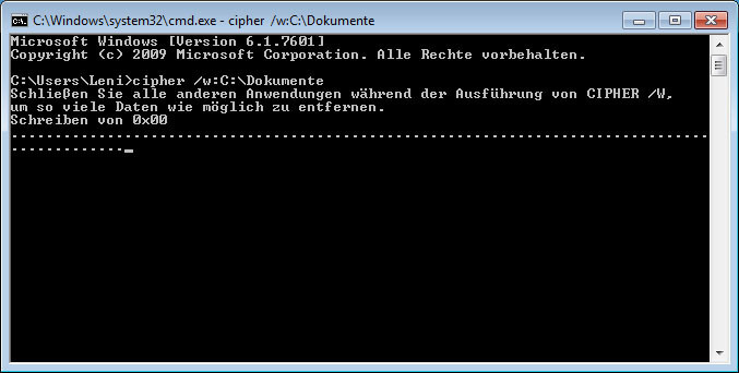 Führen Sie cipher.exe über die Eingabeaufforderung als Administrator aus. Geben Sie cipher /w /? ein, um die Verschlüsselung von Verzeichnissen [Dateien] auf NTFS-Partitionen anzuzeigen oder zu ändern. Geben Sie cipher w:x:\ordner ein (x:\ordner für den Speicherort, den Sie löschen möchten). Es schreibt eine Reihe von 0, 1 und dann zufällige Zeichen in jeden Sektor des Laufwerks oder Ordners, um alle Daten sicher zu löschen. Danach werden Sie Ihre Daten nicht mehr zurückbekommen.