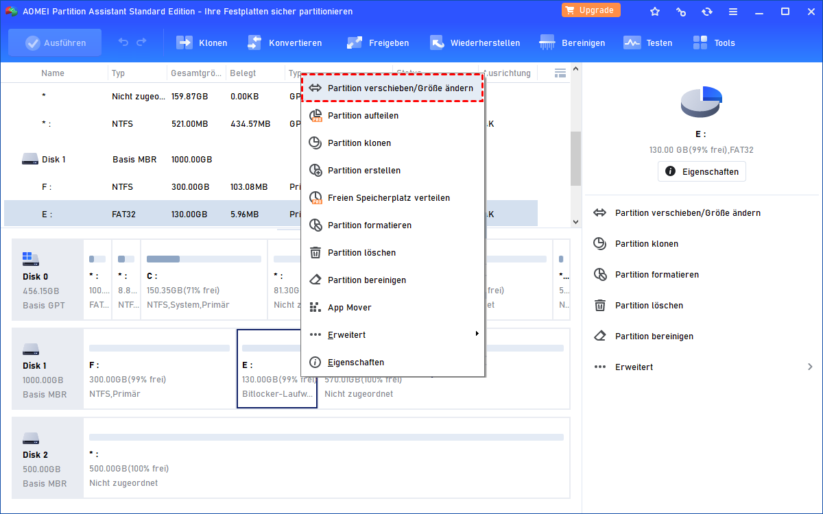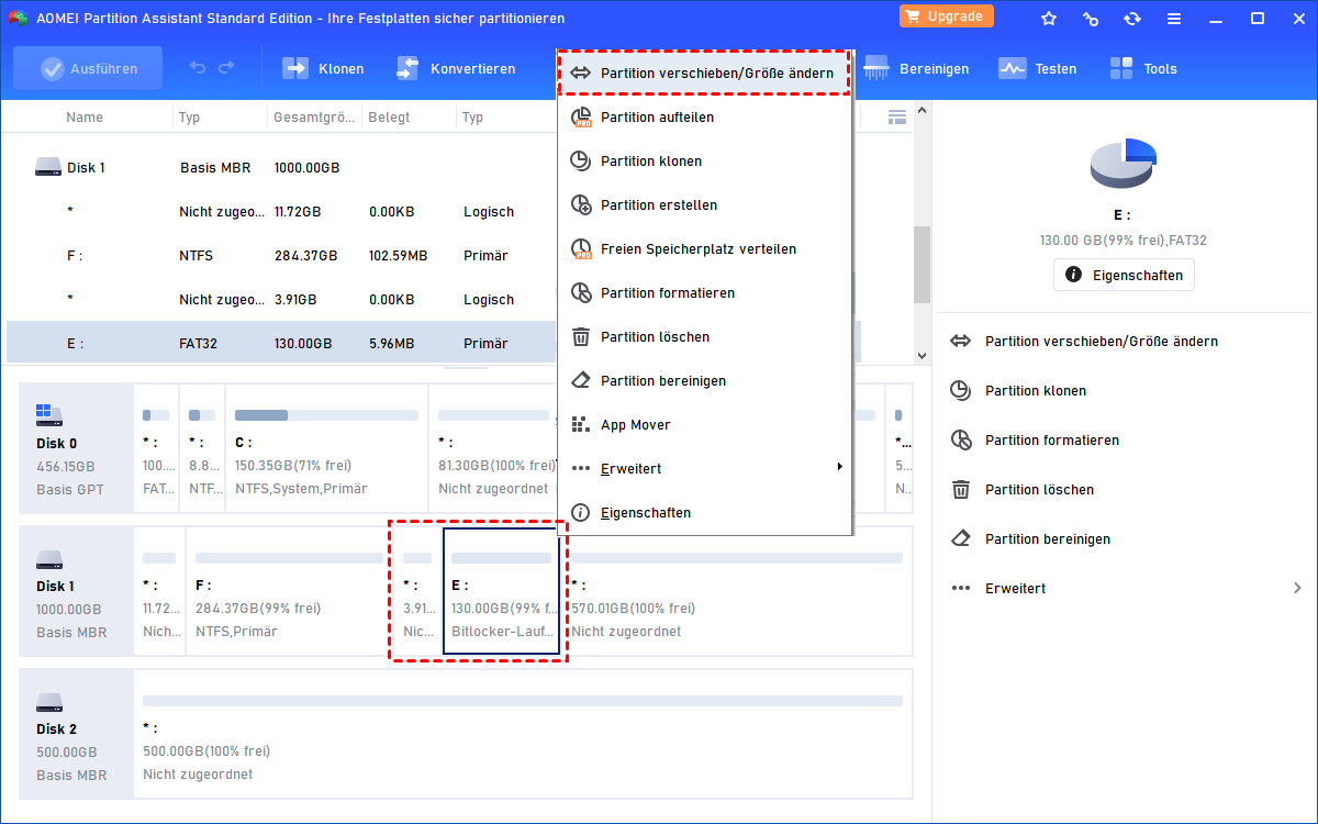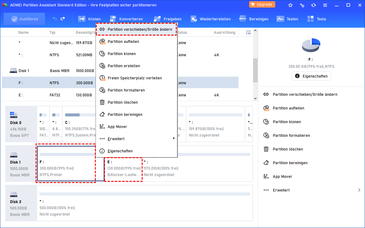 Methode 2. Größe der BitLocker-Partition direkt ändern mit einem Drittanbieter-Tool