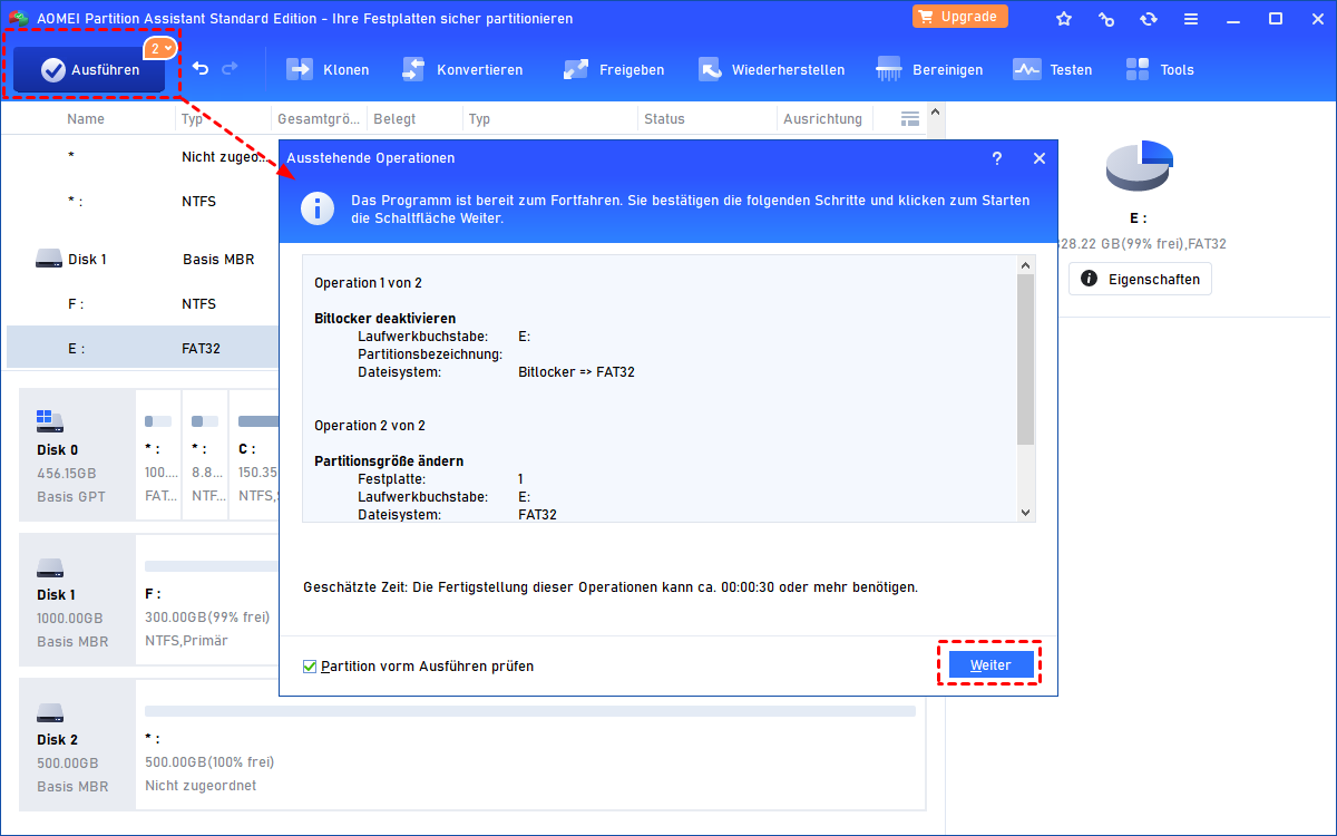 Schritt 4. Klicken Sie auf „Ausführen“ und „Weiter“, um den Vorgang zu bestätigen.