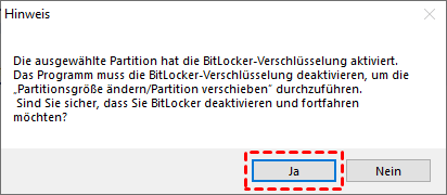 Schritt 3. Ein Hinweis sagt, dass das Programm die BitLocker-Partition entsperren werden. Klicken Sie im Pop-up-Fenster auf Ja, um fortzufahren.