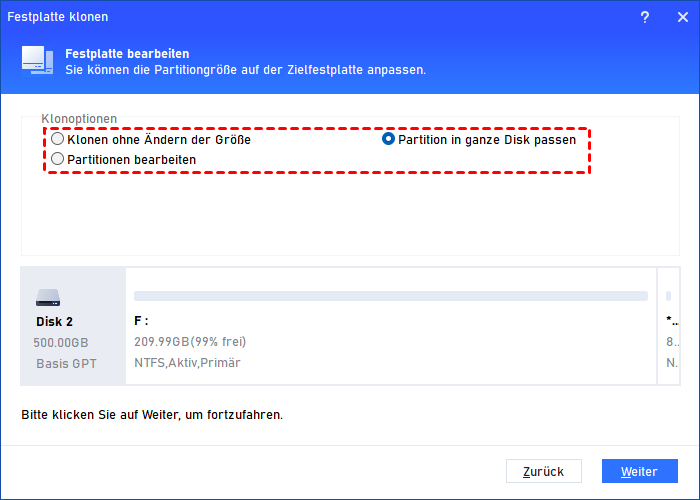 Wie kann man HDD zu SSD von verschiedenen Größen klonen?