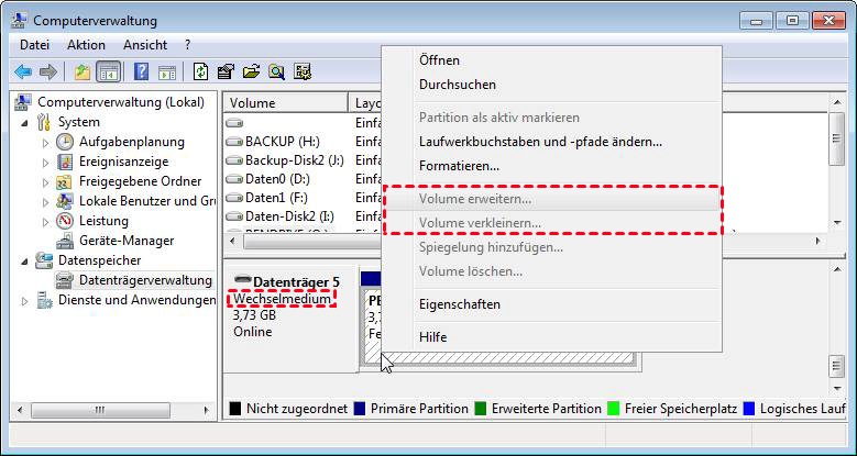 Im Folgenden wird als Beispiel die Neuformatierung eines externen Laufwerks beschrieben.