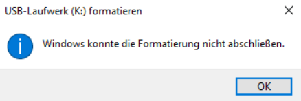 Wenn einen nicht erkannten USB-Stick nicht im Windows Explorer formatiert werden kann, können Sie das Laufwerk in der Datenträgerverwaltung oder im Dienstprogramm Diskpart formatieren.