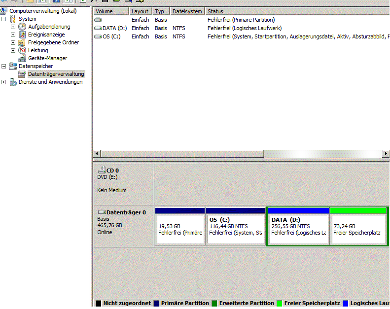 Über nicht zugeordneten Speicherplatz außerhalb der erweiterten Partition