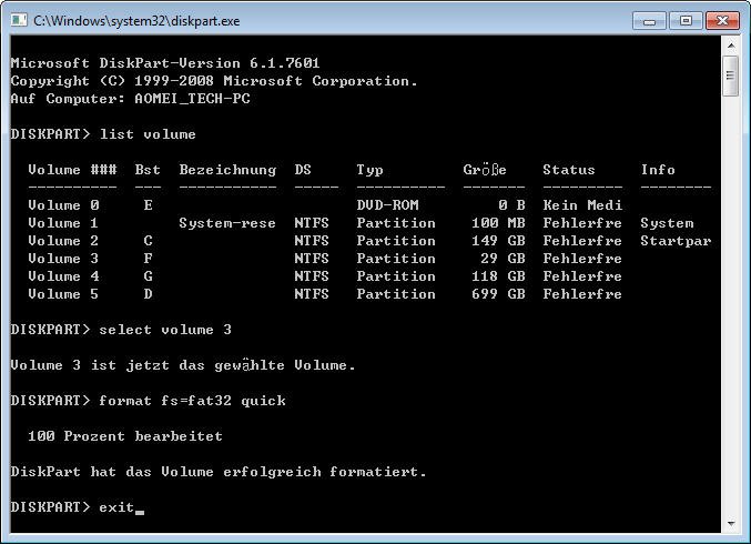 Wie kann man NTFS in FAT32 mit CMD konvertieren?