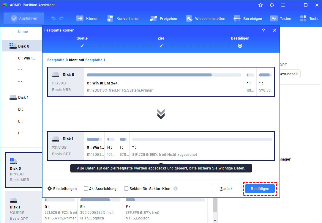 Schritt 5. Wenn Sie bestätigen, dass es beim Klonvorgang keine Probleme gibt, klicken Sie auf Bestätigen.
