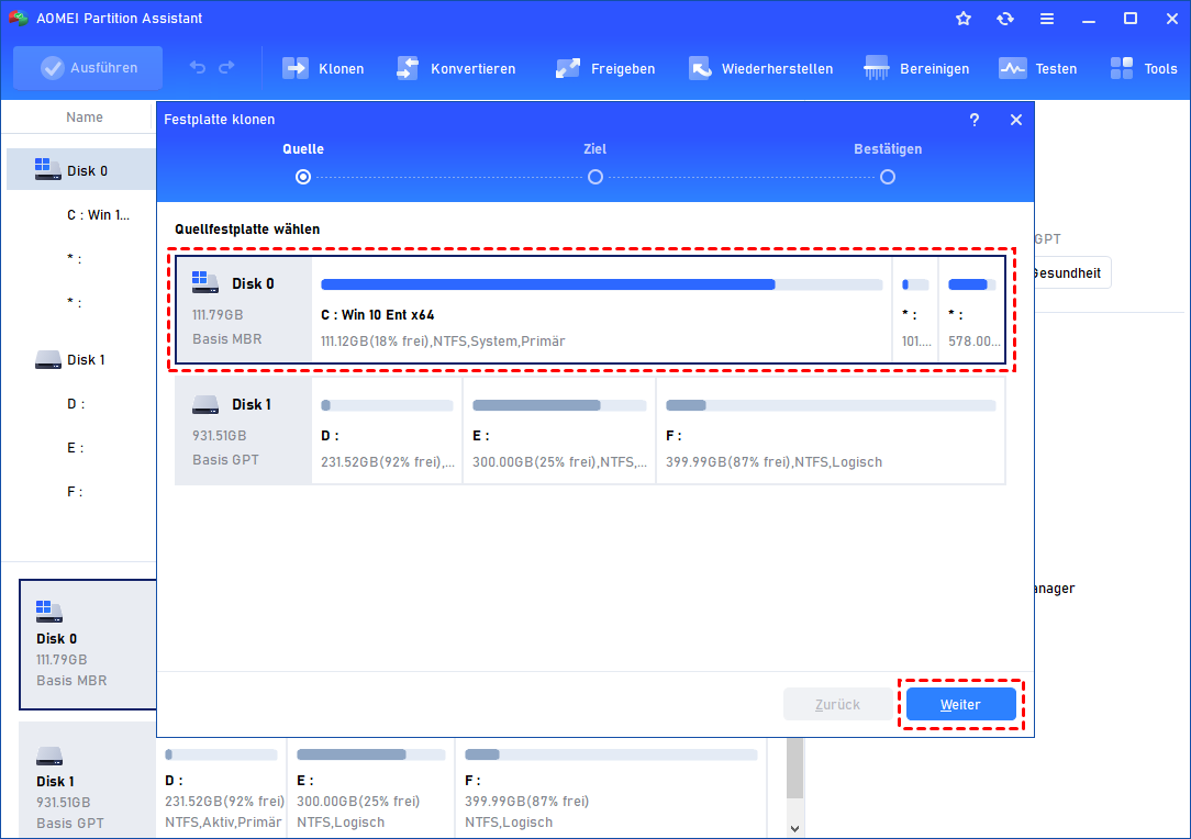 In Windows 10 gibt es kein integriertes Tool, das Sie beim Klonen von NVMe auf NVMe SSD unterstützt. Daher ist es notwendig, auf eine Drittanbieter-Software zum Klonen von Laufwerken zurückzugreifen. Hier möchte ich AOMEI Partition Assistant empfehlen.