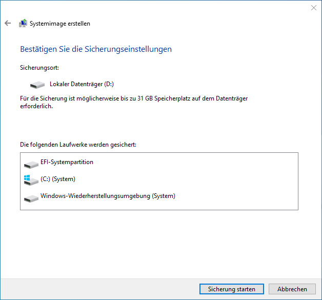 Das ist die Methode 1, wie Sie mithilfe des integrierten Windows-Tools das Betriebssystem auf SSD/HDD verschieben. Es scheint jedoch wirklich nicht praktisch, besonders für Computer-Neulinge. In diesem Fall wird eine andere einfachere Methode empfohlen – mit AOMEI Partition Assistant OS auf SSD/HDD migrieren.