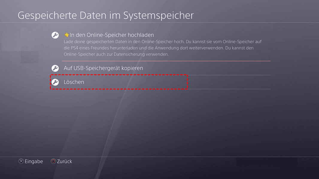 Schritt 3. Drücken Sie die Schaltfläche „Optionen“ auf Ihrem PS4-Controller und wählen Sie „Löschen“.