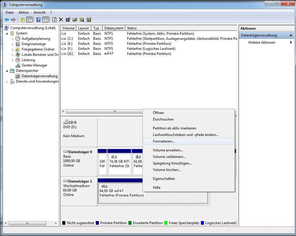 Klicken Sie danach mit der rechten Maustaste auf die SDXC-Karte und wählen Sie Formatieren.