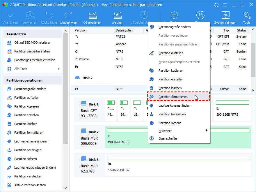 Dieser Artikel zeigt Ihnen, wie Sie eine verschlüsselte Festplatte formatieren können. Wir empfehlen Ihnen, AOMEI Partition Assistant zu verwenden, es dauert nur ein paar Klicks. Außerdem hat diese Software viele andere nützliche Funktionen, wie das Klonen von Festplatten, das sichere Entfernen von SSDs, das Umziehen von Betriebssystemen, und so weiter.