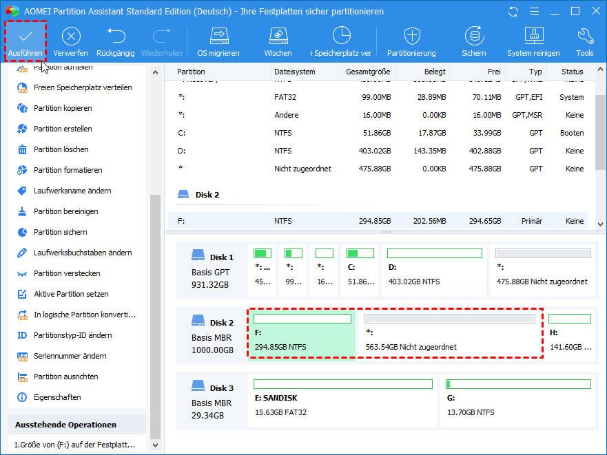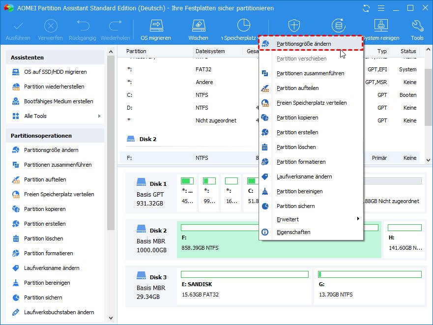 Lösung 3: Kostenloses Partitionsprogramm verwenden