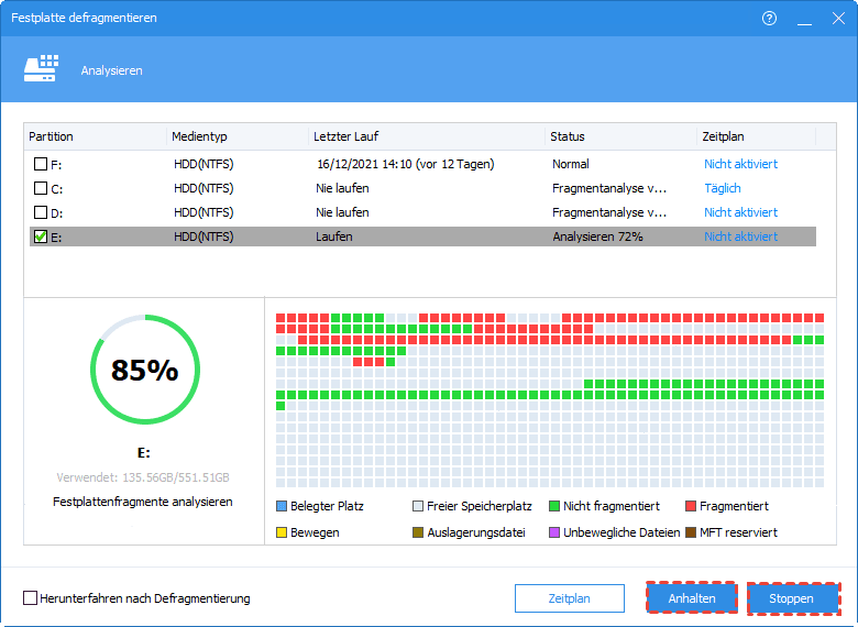 Hinweis: Wenn die Fragmentdateien in Gebrauch sind, können sie nicht defragmentiert werden.