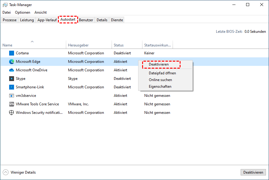 Startprogramme werden von Computerbenutzern oft ignoriert. Wie der Name schon sagt, werden sie automatisch geladen, wenn Sie Ihren Computer starten, und verbrauchen im Hintergrund wertvollen Speicherplatz. Daher können Sie einige nicht benötigte Programme auf im Task-Manager deaktivieren, um den Speicherplatz zu sparen und Windows 10-Start zu beschleunigen.