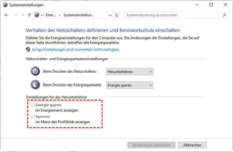 Schritt 3. Wählen Sie „Einige Einstellungen sind momentan nicht verfügbar“.