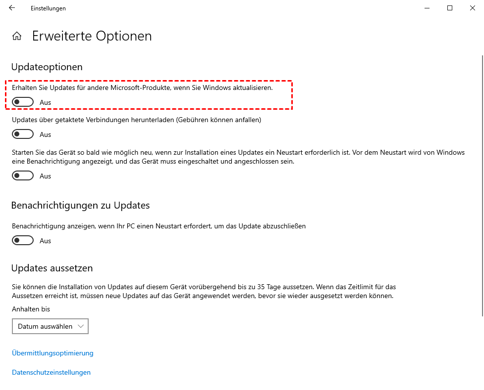 ▶ Lösung 7. Microsoft-Produktupdates deaktivieren