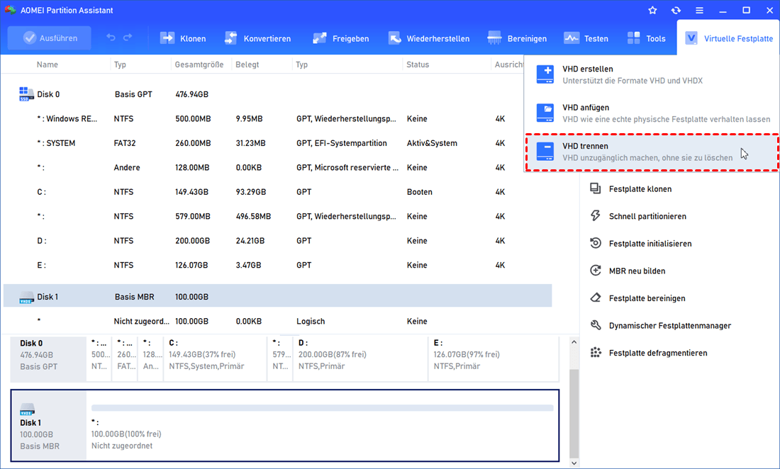 Die komfortabelste Lösung: VHD mit AOMEI Partition Assistant erstellen