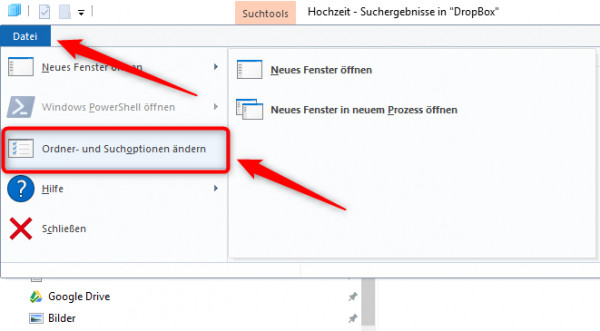 Schritt 2. Drücken Sie „Win + E“, um den Datei-Explorer neu zu starten, klicken Sie auf „Datei“ und wählen Sie „Ordner- und Suchoptionen ändern“.