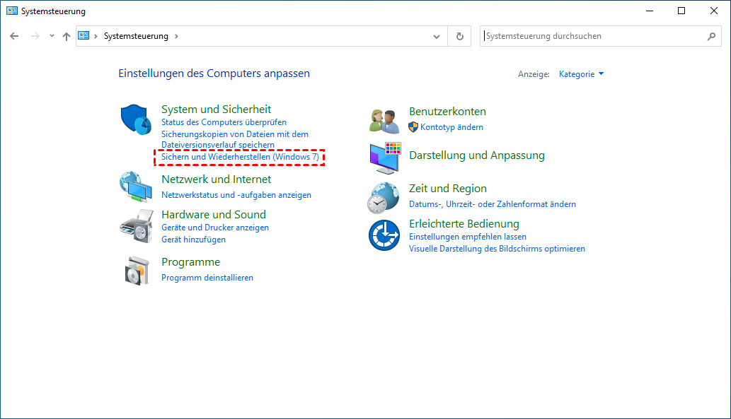 Schritt 1: Gehen Sie zum Bedienfeld und wählen Sie nacheinander System und Sicherheit > Sichern und Wiederherstellen (Windows 7).