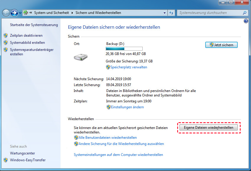Datenrettungsdienste 3. Verlorene Dateien aus „Sichern und Wiederherstellen (Windows 7)“ holen