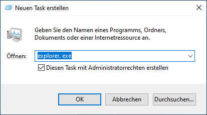 Schritt 3. Geben Sie im kleinen Fenster „explorer.exe“ ein und klicken Sie dann auf „OK“, um den Windows Explorer neu zu starten.