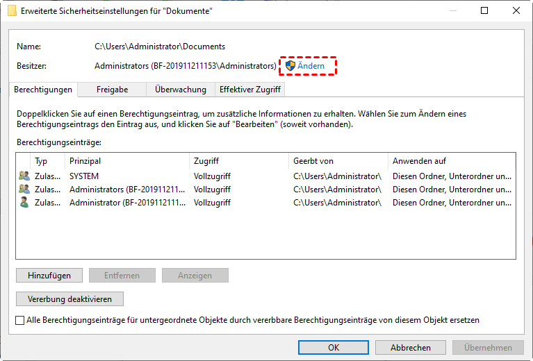 Schritt 2. Klicken Sie neben dem Besitzer auf die Schaltfläche „Ändern“.