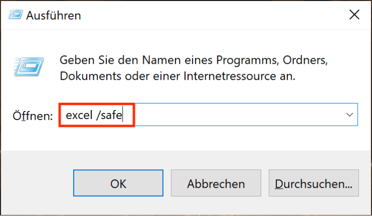 Der abgesicherte Modus deaktiviert alle Add-Ins und ermöglicht es Ihnen zu prüfen, ob diese das Problem verursachen.