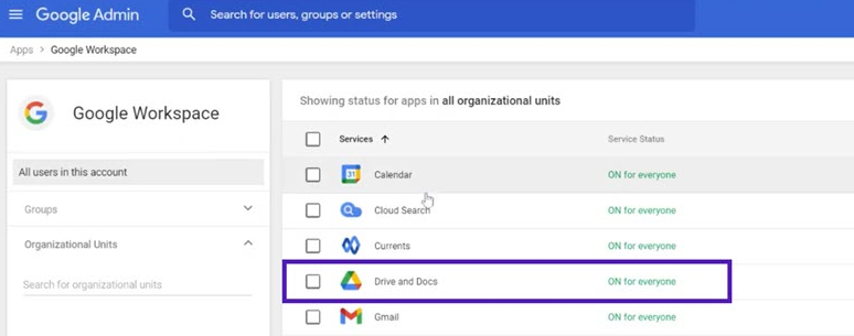 Schritt 2. Gehen Sie in der Admin-Konsole zu „Menü > Apps > Google Workspace > Drive > Docs“.