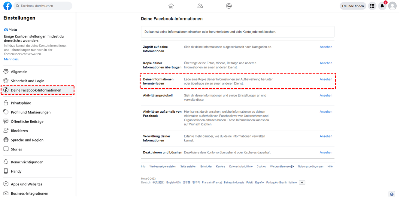 Lösung 3: Gelöschte Fotos über das Facebook-Archiv wiederherstellen
