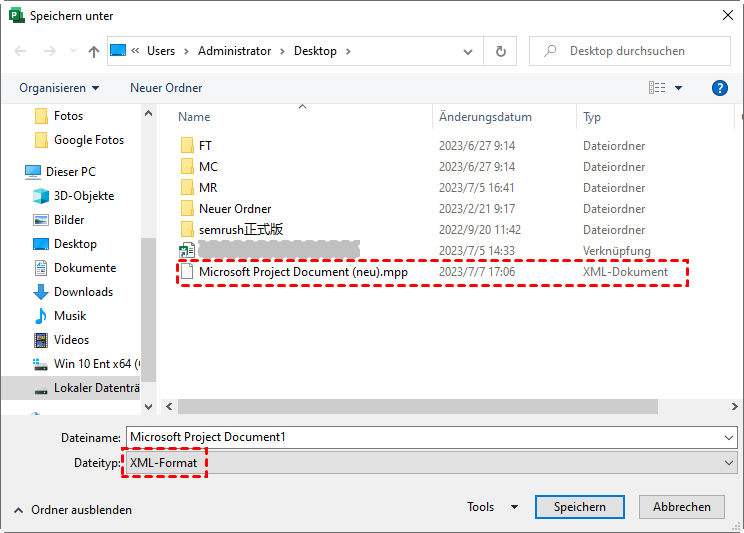Methode 1. Die beschädigte MS Project-Datei als XML-Datei speichern