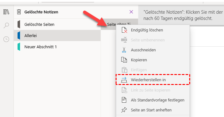 Kann man OneNote gelöschte Seite wiederherstellen?