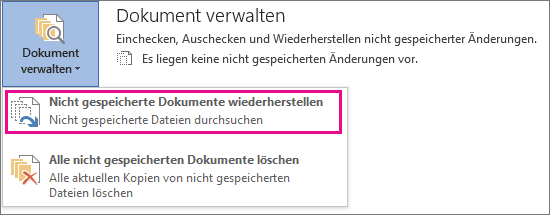 Schritt 2. Klicken Sie auf „Dokumente verwalten" und wählen Sie in der Dropdown-Liste „Nicht gespeicherte Dokumente wiederherstellen“.