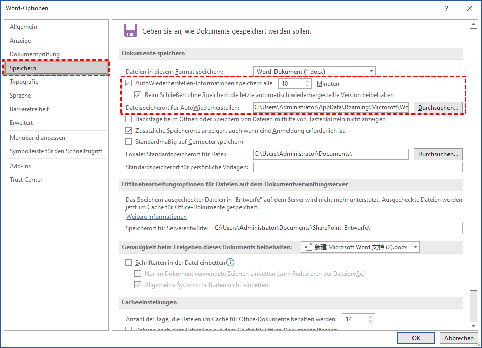 Ähnlich wie AutoRecover ist auch AutoSave eine integrierte Funktion von Microsoft Office. Wenn Sie AutoSave im Voraus aktiviert haben, können Sie das verlorene Word-Dokument ebenfalls wiederherstellen.