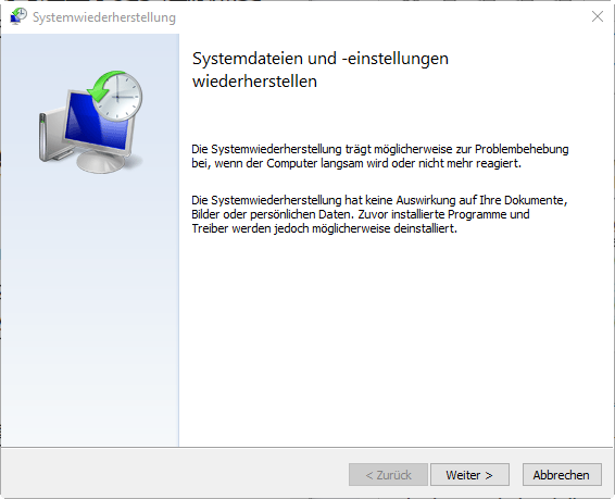 Ein Systemwiederherstellungspunkt kann Ihr System in seinen früheren Betriebszustand zurückversetzen, sodass Sie Probleme beheben und gelöschte oder beschädigte Benutzerprofile wiederherstellen können. Alle nach einem Wiederherstellungspunkt installierten Apps, Treiber oder Updates gehen jedoch verloren.