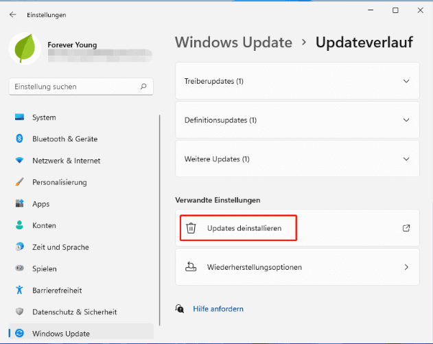 Schritt 4. Scrollen Sie nach unten zum Abschnitt „Verwandte Einstellungen“ und klicken Sie auf „Updates deinstallieren“.