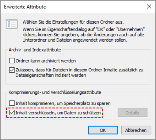 Schritt 3. Deaktivieren Sie die Option Inhalte verschlüsseln, um Daten zu sichern.