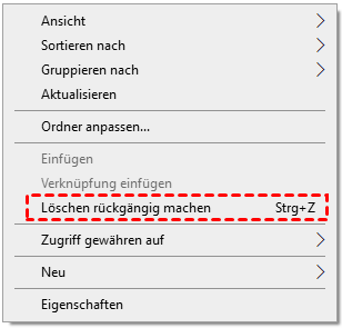 Wenn Sie feststellen, dass Ihre Dateien verschwunden sind, keine Sorge, klicken Sie mit der rechten Maustaste auf den leeren Bereich und klicken Sie sofort auf „Löschen rückgängig machen“ oder drücken Sie „Strg + Z“, um gelöschten Dateien in Windows 10 wiederherzustellen. Gehen Sie dann in den Ordner, in dem sich die gelöschten Dateien ursprünglich befunden haben, um die wiederhergestellten Dateien zu finden.