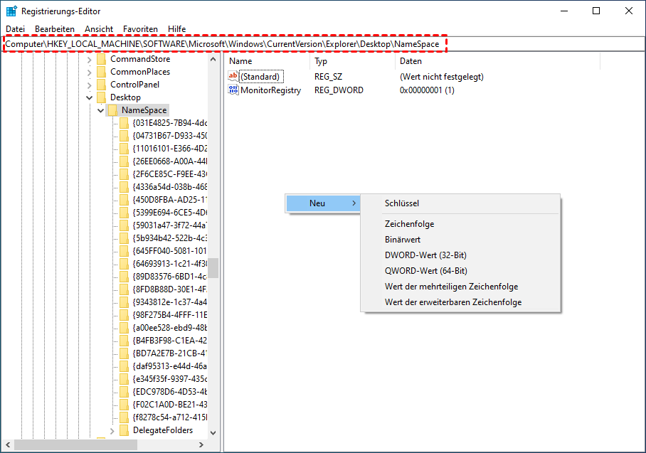 Schritt 2. Gehen Sie zum Pfad: HEKEY_LOCAL_MACHIME/SOFTWARE/Microsoft/Windows/CurrentVersion/Explorer/Desktop/NameSpace.