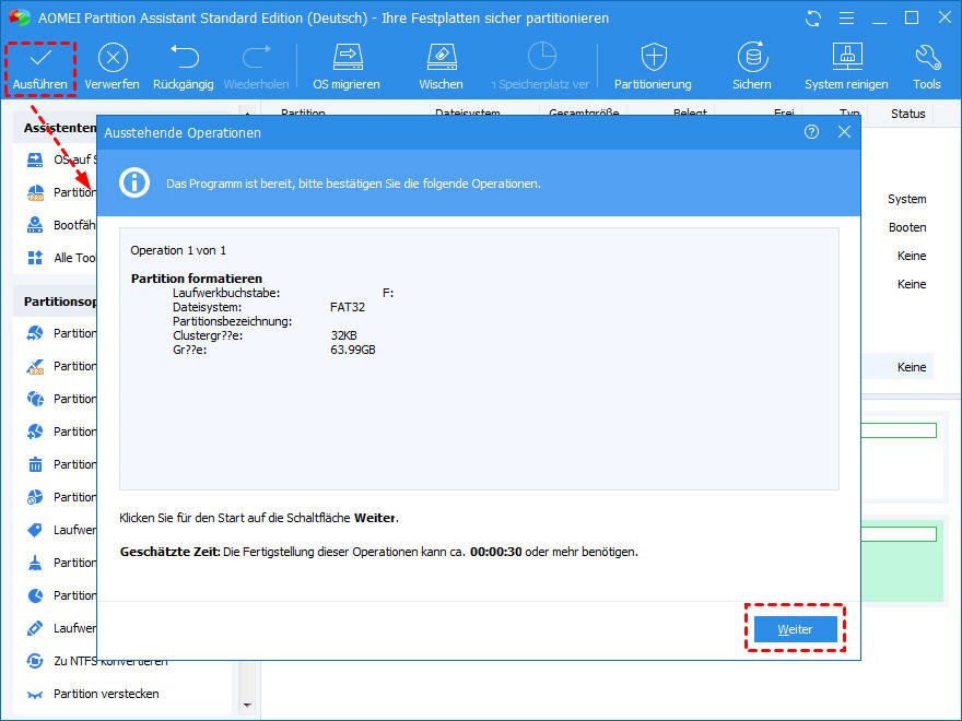 Lass uns ansehen, wie Sie mit AOMEI Partition Assistant „Diskpart hat einen Fehler festgestellt: Falsche Funktion“ beheben können.